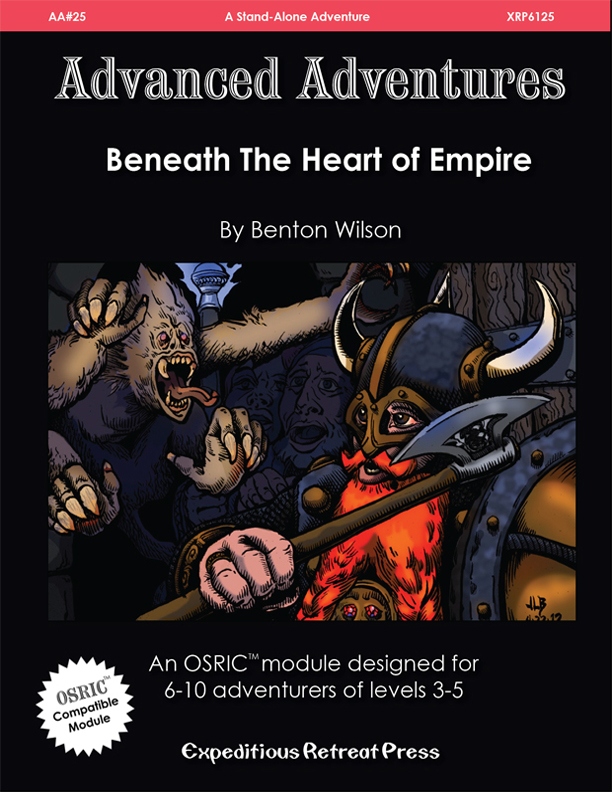 Advanced Adventures #25: Beneath the Heart of Empire is now available via our website as well as in PDF form at www.yourgamesnow.com and rpgnow.com.